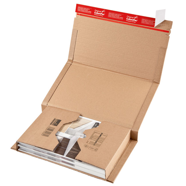 Damit sich die Warensendung leicht öffnen und wieder verschließen lässt, können Sie wieder verschließbare Versandtaschen oder Umschläge verwenden. Für größere Waren eignen sich zum Beispiel Kartons mit Einstecklaschen.