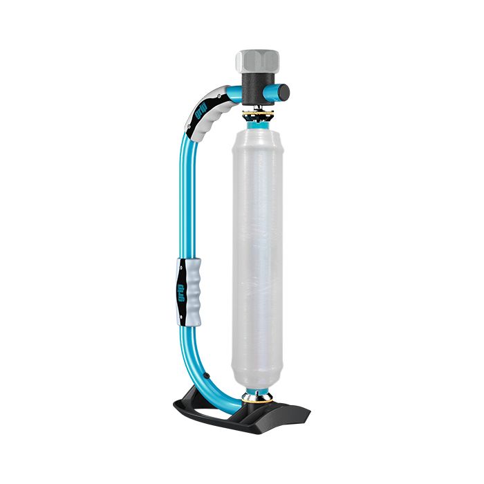 • Stretchfolienabroller mit kugelgelagerter Welle und Abrollbremse für kontrolliertes, weniger ermüdendes Arbeiten
